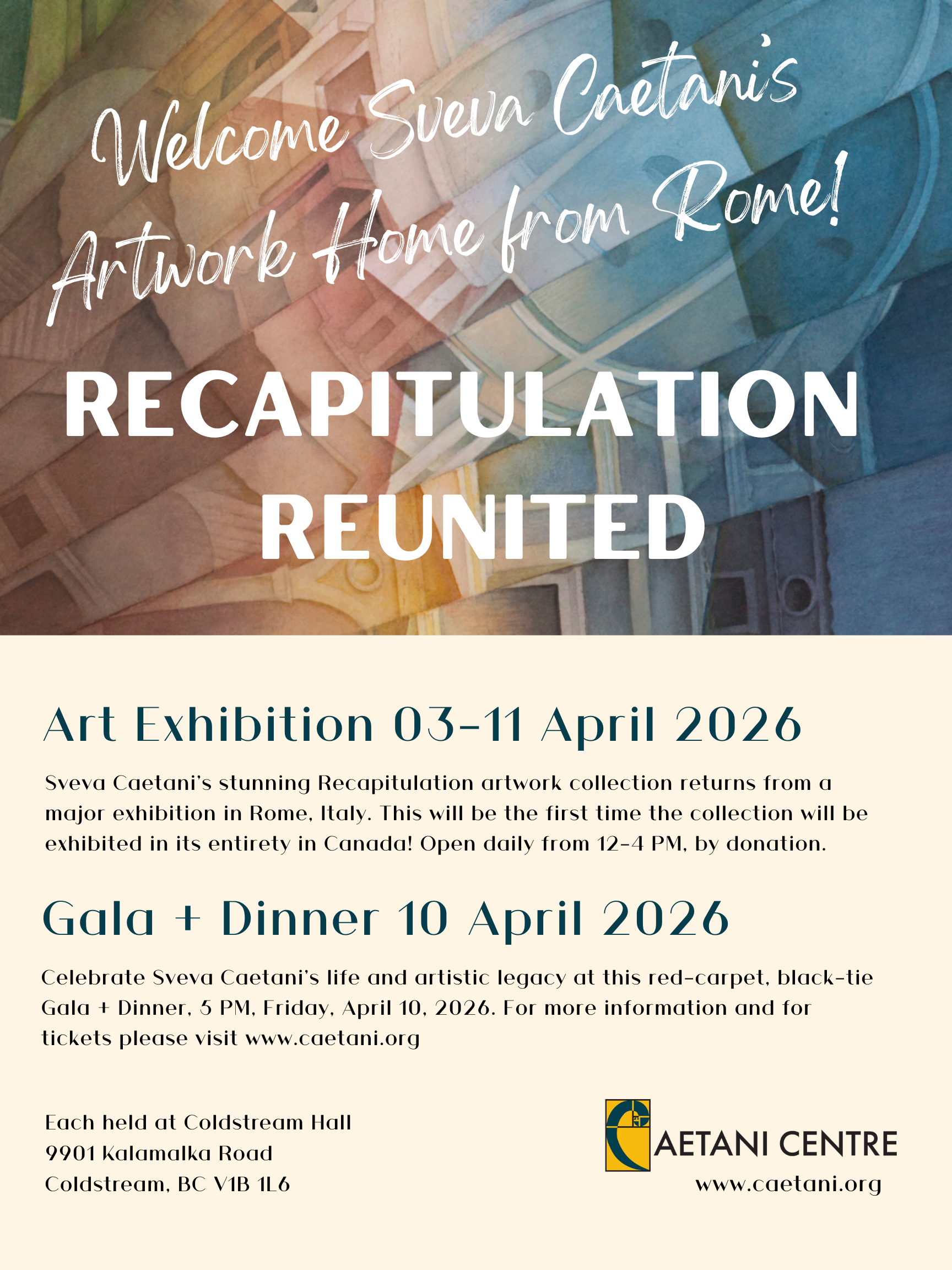 PLEASE NOTE: Both the Exhibition and the Gala and Dinner will be held at Coldstream Hall, located at 9901 Kalamalka Road, Coldstream, BC