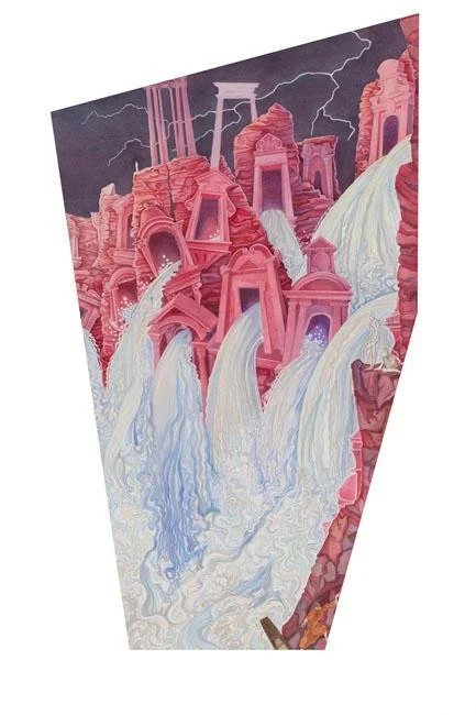 The exhibition features a group of paintings in the Recapitulation Series deal with the family trauma and how Sveva came to terms with it through a Jungian journey into her subconscious that allowed her to process the pain. The result is a number of compelling paintings featuring a range of symbolism that Sveva described as follows: “Most people are used to images . . . the surrealism of Salvador Dali . . . limp watches . . .pianoforte with breasts, or something like that . . . and they laugh at it, they don’t really take the symbolism very seriously. My symbolism has always been serious, and therefore, people find it frightening.”